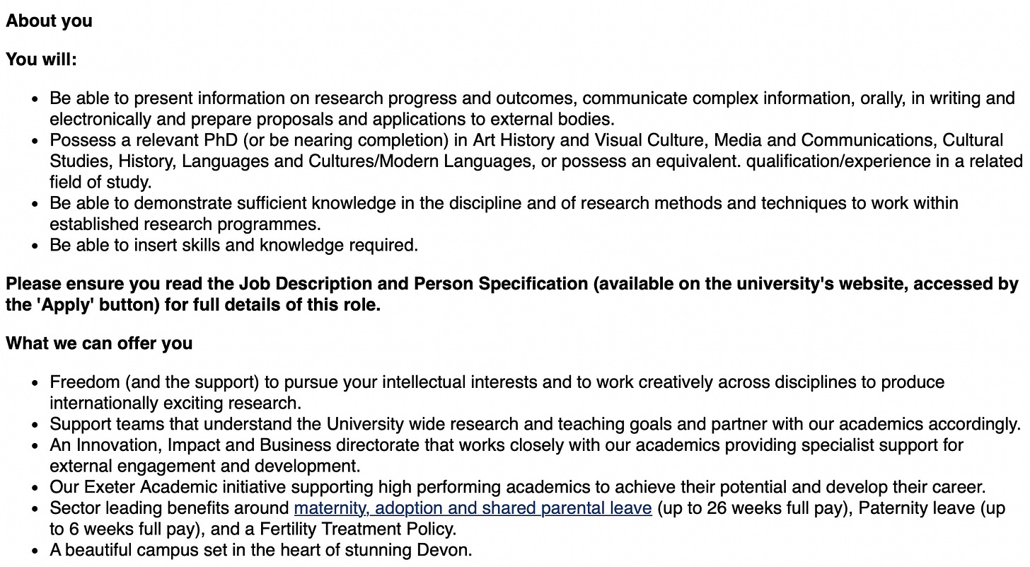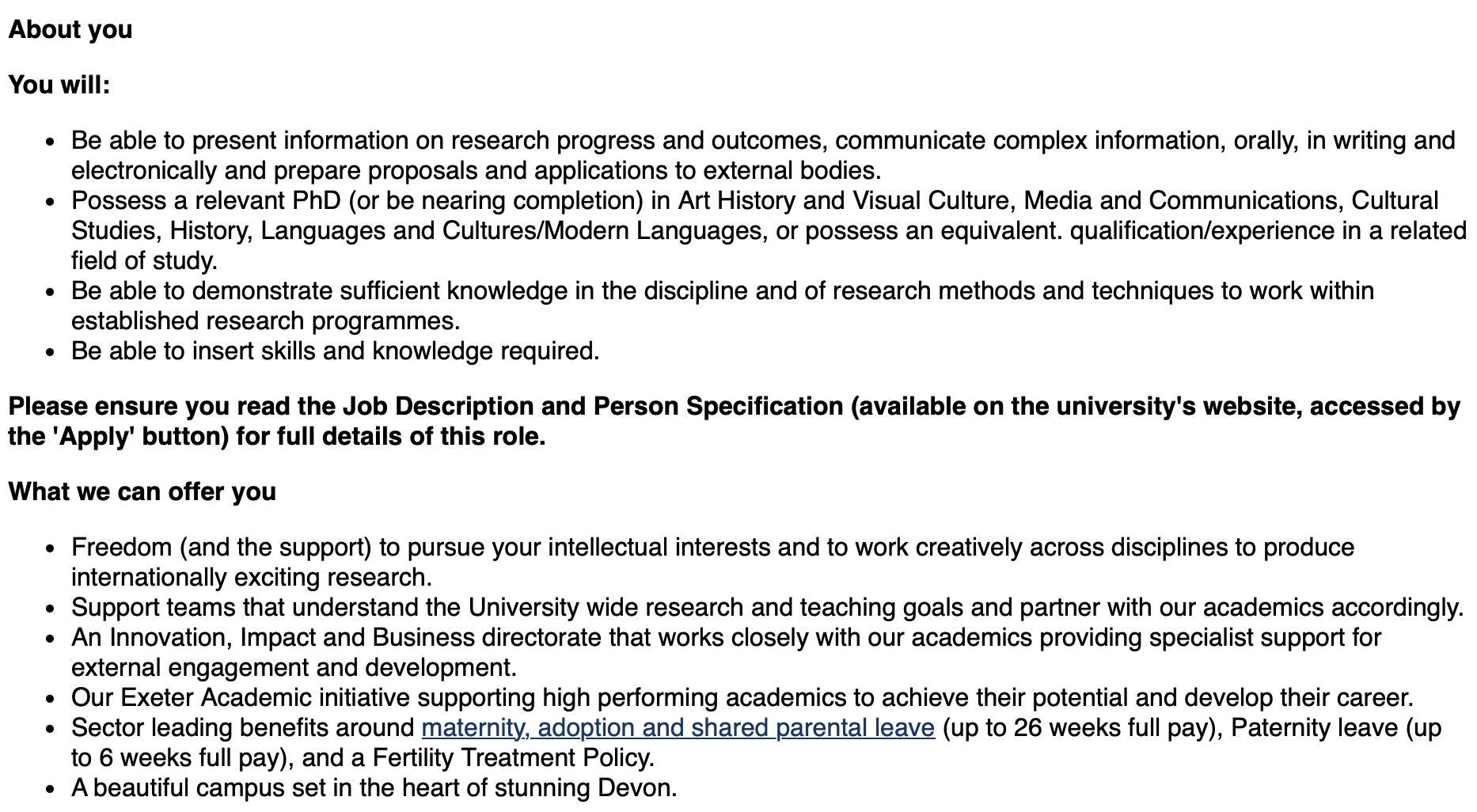 The adverts look largely the same, but “One, fluent in German (besides English), will focus research in Germany and the Netherlands” and “The other, fluent in Polish (besides English), will focus research in Poland and the UK.” The posts are at the University of Exeter with a starting salary “from £32,982”.