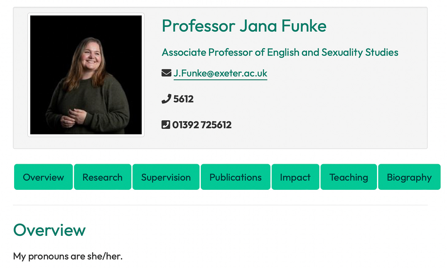 According to her research profile (she has kindly pointed out her pronouns are “she/her”), Funke is “currently completing three monographs: Sexological Modernism: Queer Feminism and Sexual Science (Edinburgh University Press, 2024), Sexperts: A History of Sexology (Reaktion Press, 2024) and a book on the interdisciplinary history of sexology jointly authored with Professor Kate Fisher.”