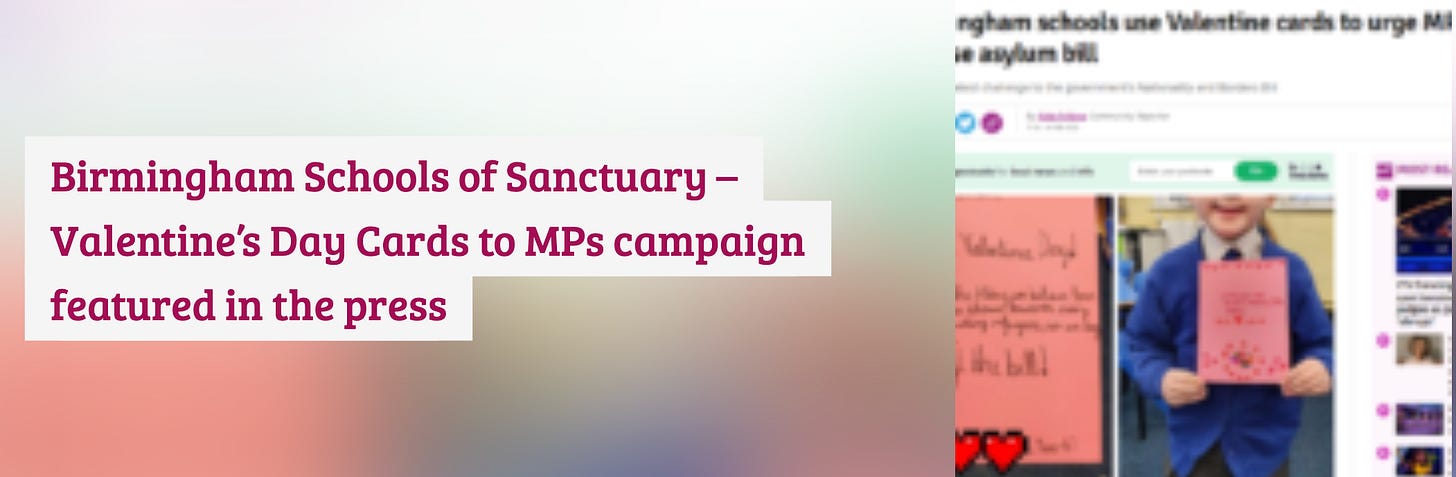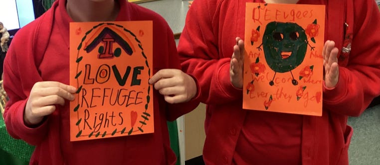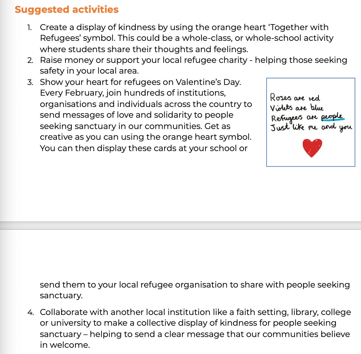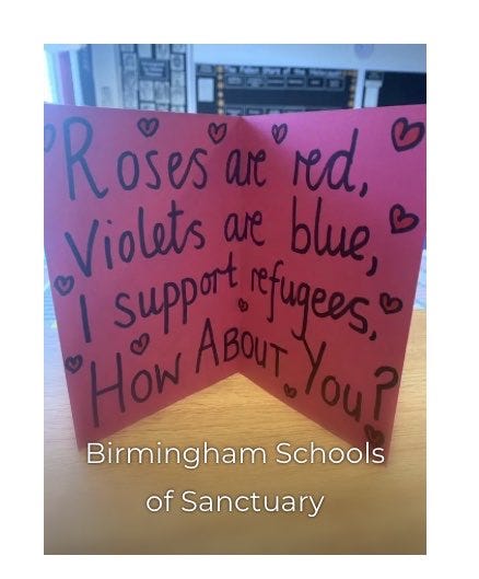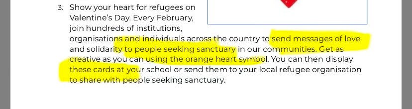 encouraged schools to “Show your heart for refugees on Valentine’s Day”