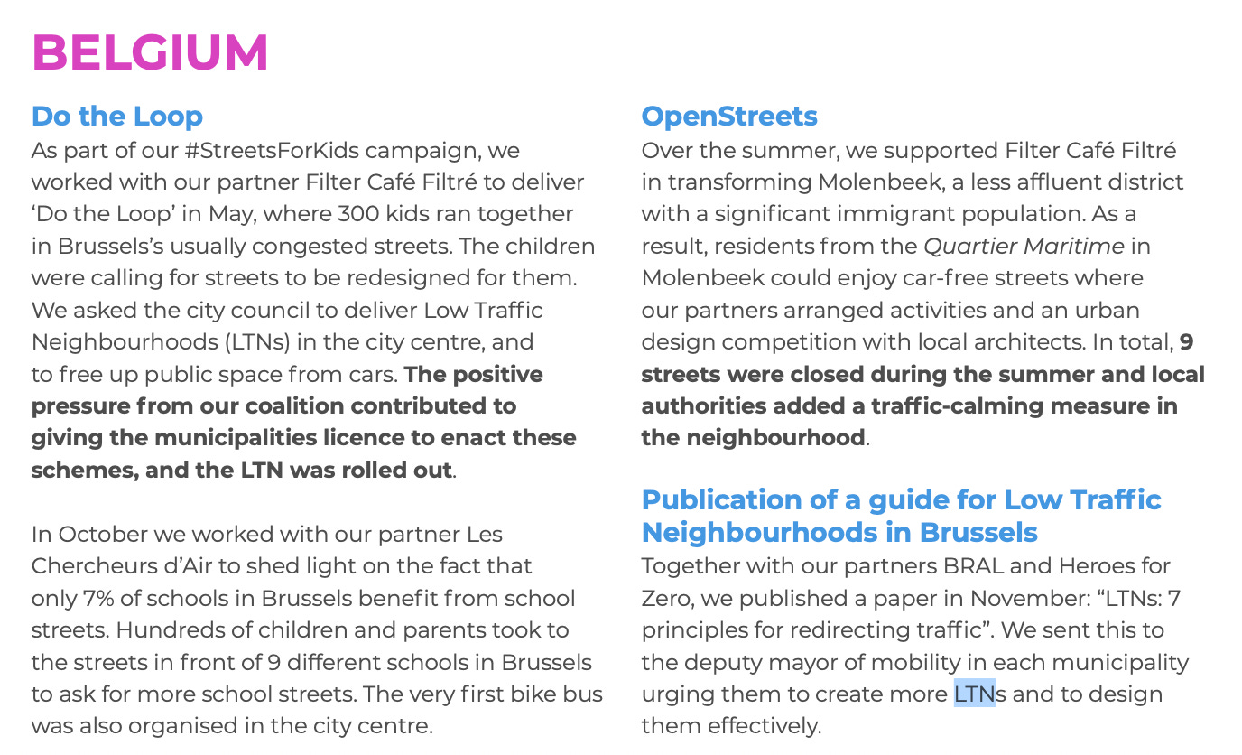 Its 2022 Impact Report, for instance, shows Clean Cities calling Belgian council leaders to introduce LTNs, which stop cars entering roads, making it pointless to buy an electric or any of the other “environmentally-friendly” options drivers are nudged towards (often by the same people who want to force all cars off the roads).