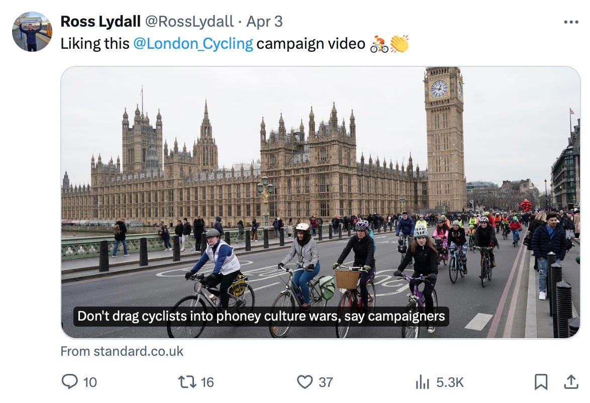 Again, it is not obvious that he is a neutral adjudicator as opposed to being chosen because he likes cycling. Here’s one of his recent posts from X:
