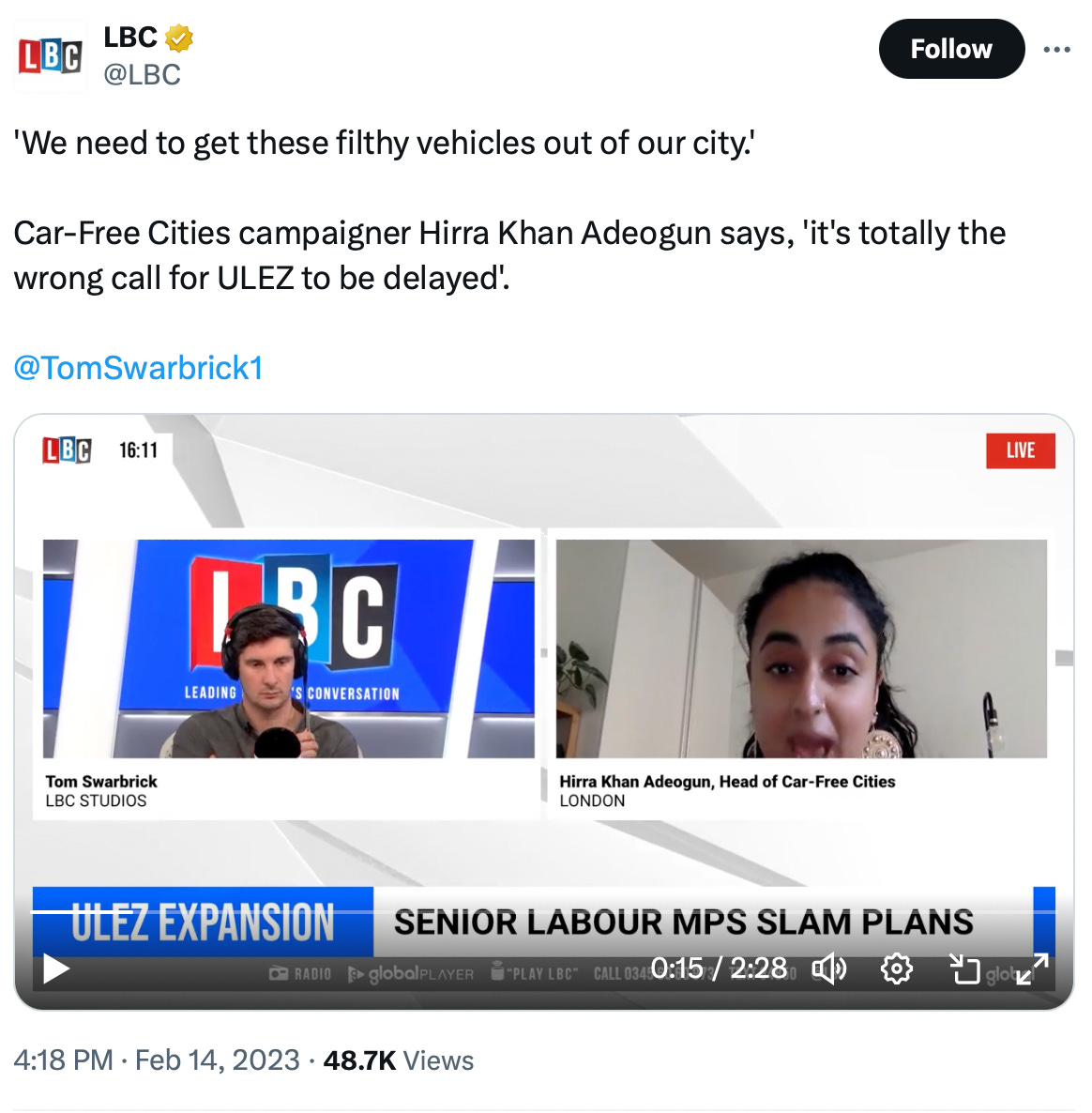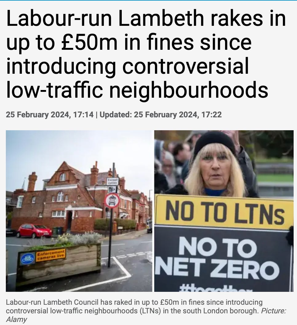 According to Sustrans, 47% of Londoners support Low Traffic Neighbourhoods and 16% oppose them, which is surprising stuff when you look at the fines handed out.