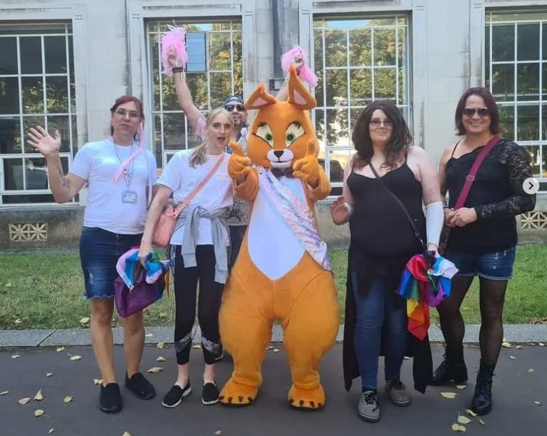 Nutmeg (below) is the group’s “cheeky mascot who helps us to raise awareness of our group so that we can help and support more transgendered individuals.” You can also see the National Lottery Community Fund mentioned below: