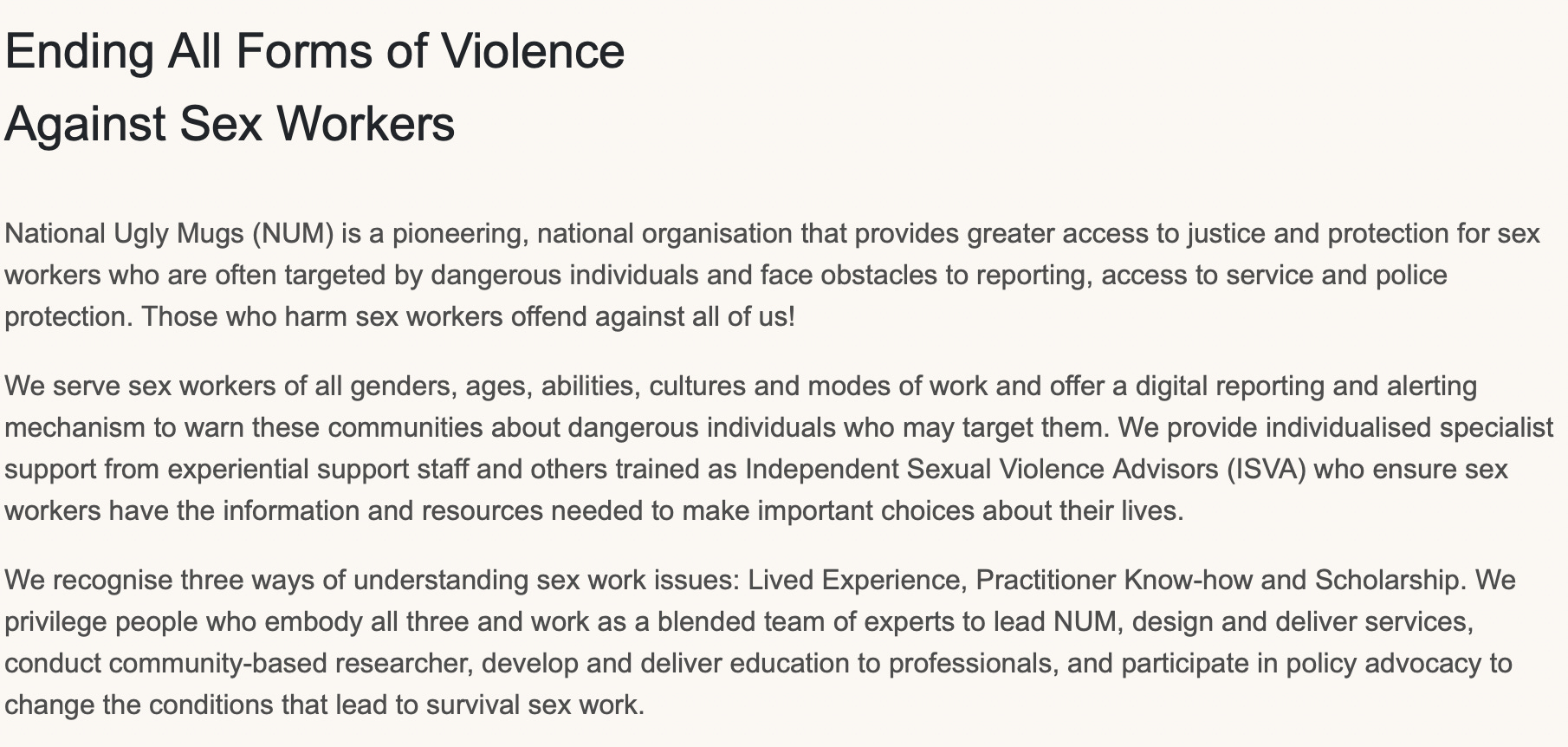 Once the team is assembled, theyâll be exploring how âNUM services" are working out for sex workers, including the âNUM checkerâ an online tool for you to screen your clients, keeping you safe and informed of any details previously reported to NUM.â