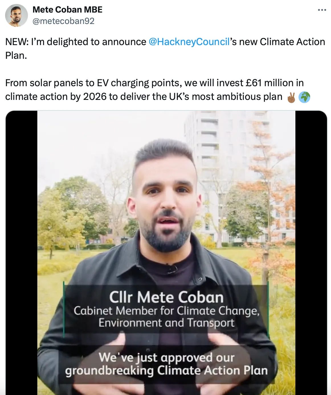 … while promoting Hackney’s £61 million investment in “climate action”: