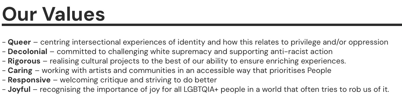 Its values include âQueerâ, âDecolonialâ and âCaringâ: