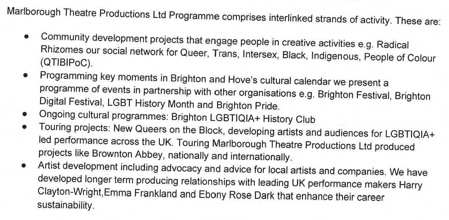 Not only has Marlborough Productions been funded by ACE and government grants, but it receives other sources of taxpayer funding (2022-2023 accounts below):
