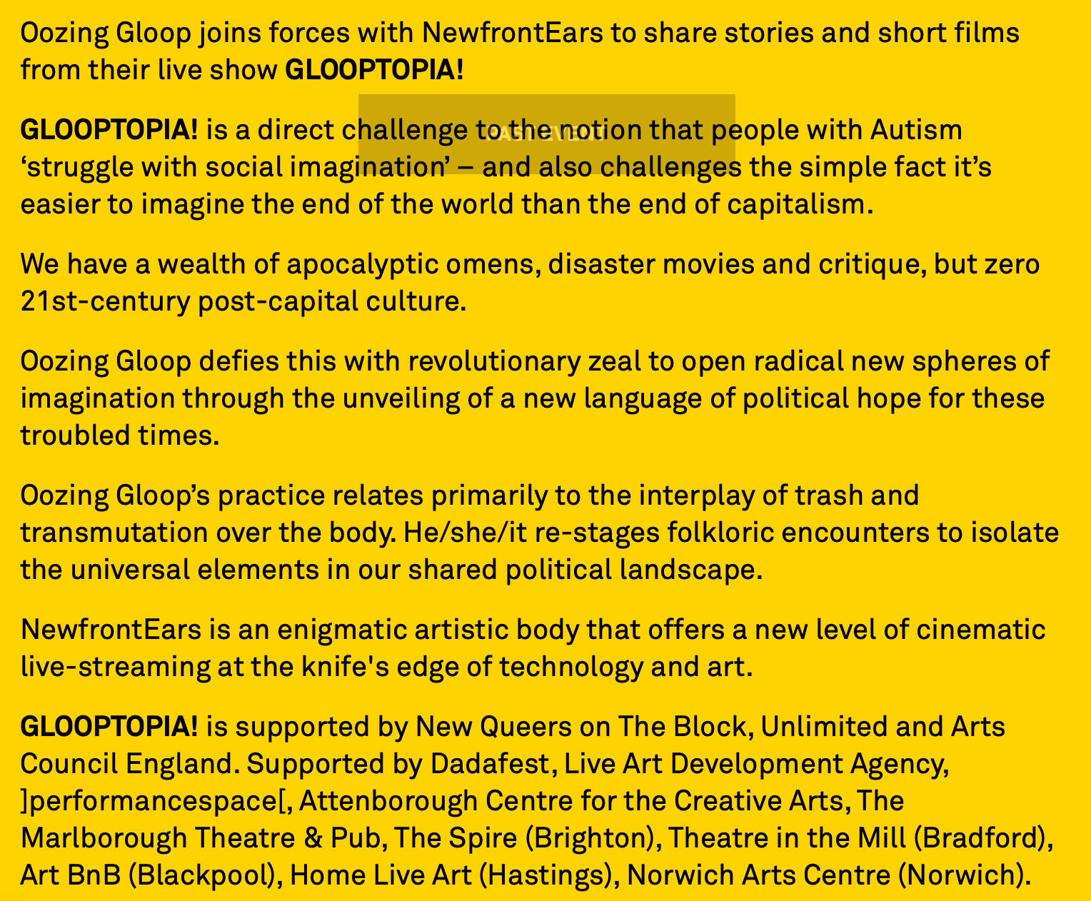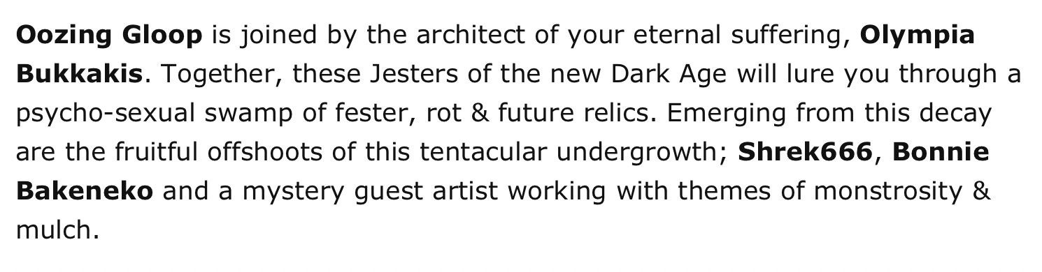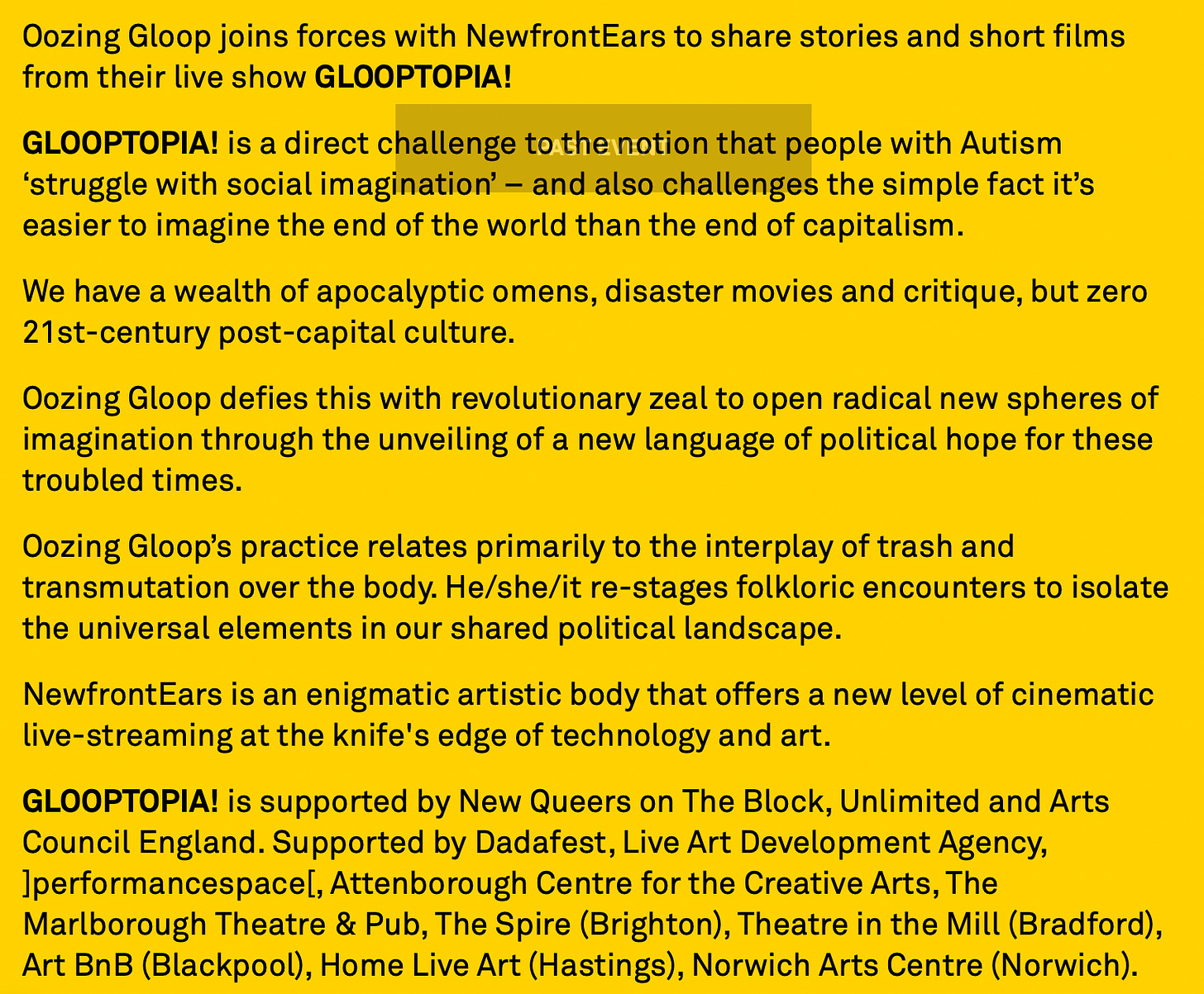 Oozing Gloop even had a show at the (taxpayer-funded) Southbank Centre in 2021, titled: