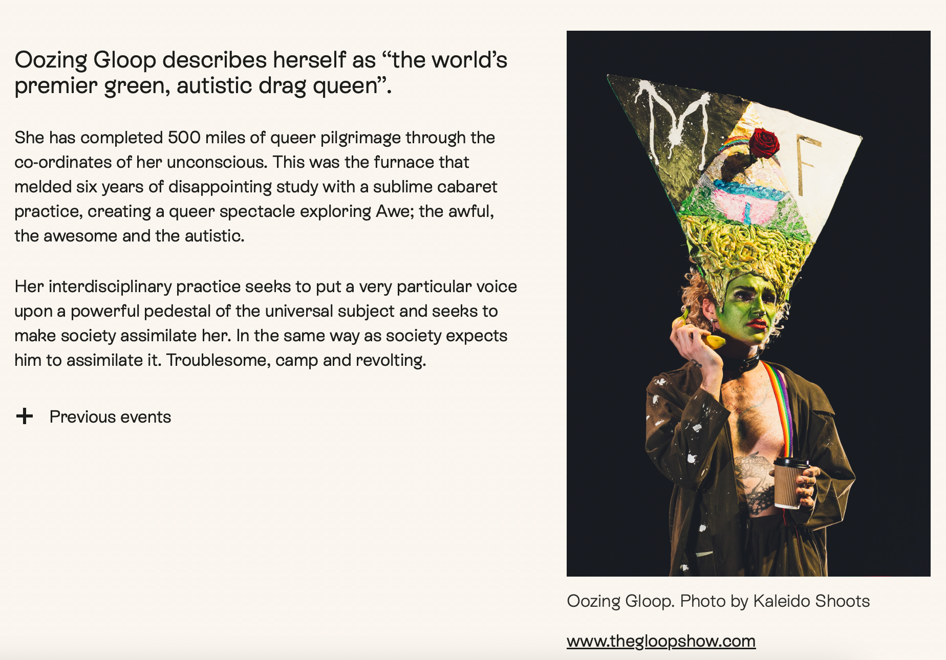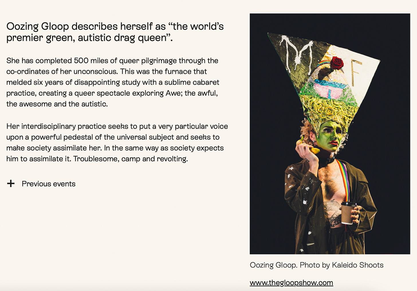 I discovered Oozing Gloop while trawling through the website of Marlborough Productions, âa leading UK producer of queer-led, intersectional performance, parties, heritage and radical community gatheringsâ based in Brighton.