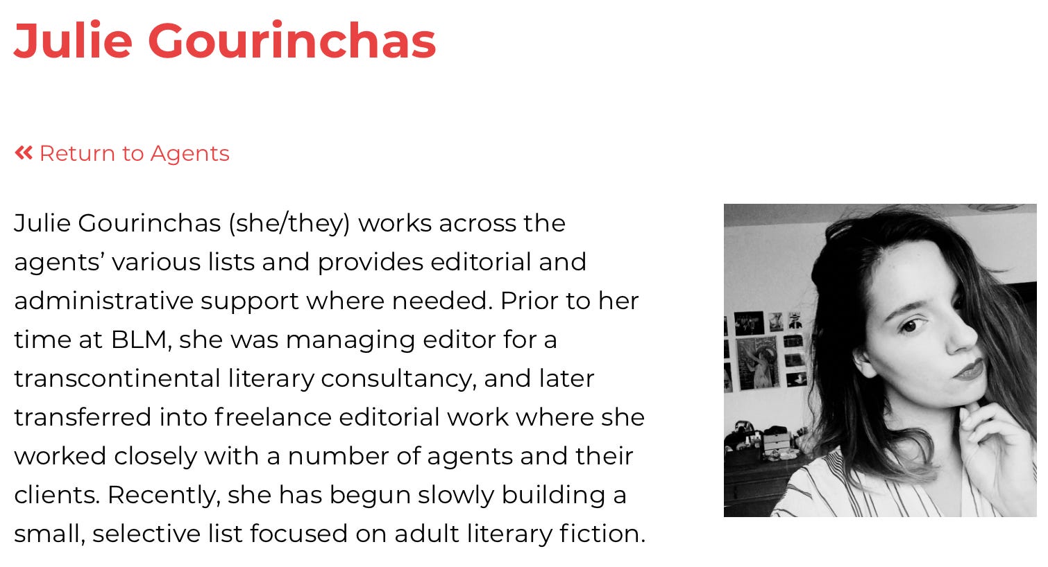 Julie Gourinchas - Karella (above)âs agent - a âshe/theyâ who is: