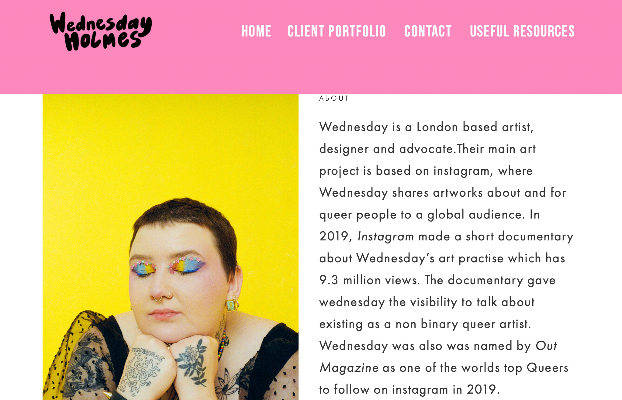 Wednesday Holmes, Artist & Author - and ânon binary queer artistâ