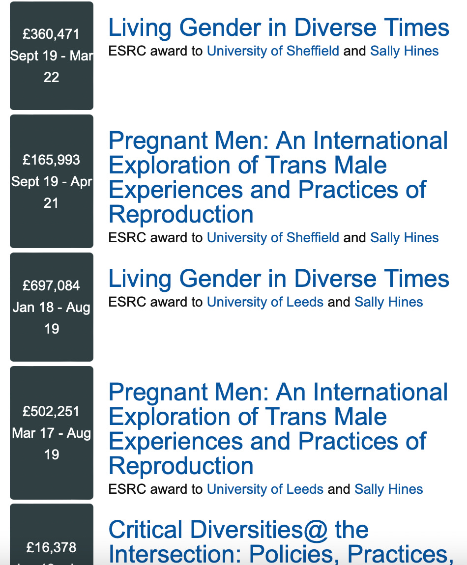 Professor Sally Hines, Author and the recipient of almost ÂŁ700,000 in taxpayer cash to study pregnant men (her other terrible studies have had large funding amounts too).