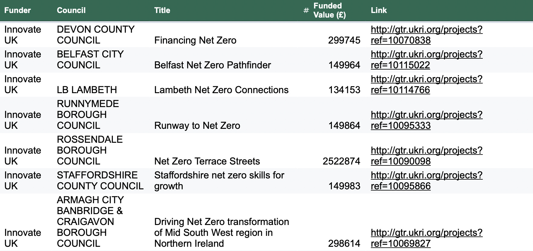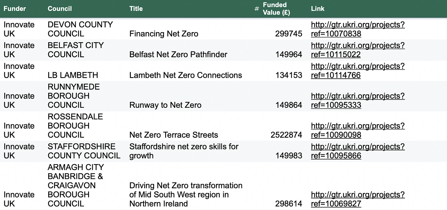 Just take a look at these active Net Zero grants for councils, mostly from Innovate UK, an arm of the UKRI (whose total budget is £8.9 billion a year from UK taxpayers):