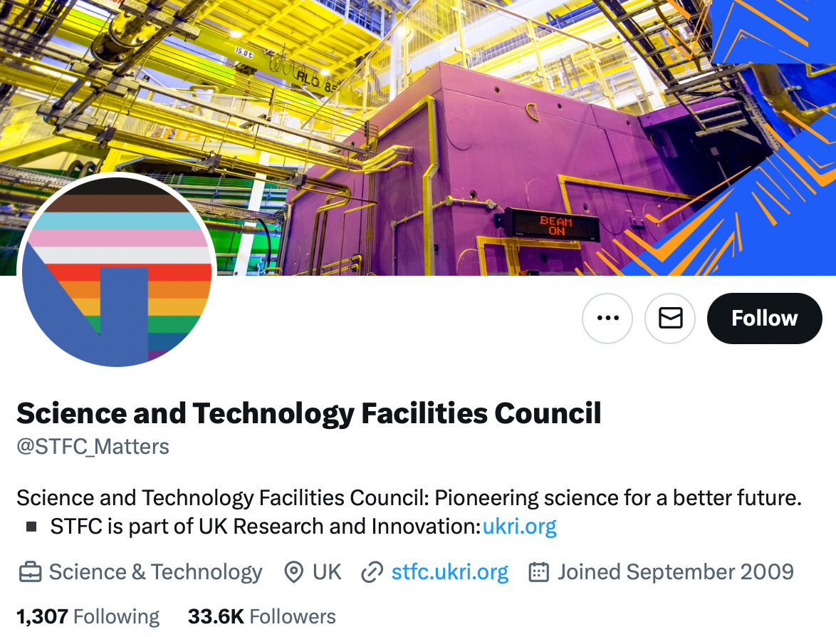 I wonāt keep you in suspense; itās the profile image on X for The Science and Technology Facilities Council (STFC), another UK Research and Innovation (UKRI) subsidiary: