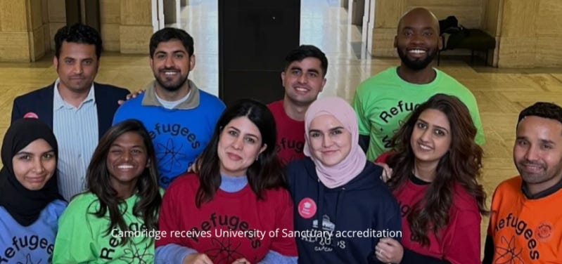 Last week, the charity City of Sanctuary announced recipients of its “Sanctuary Awards programme”, which “recognises and celebrates the organisations and institutions who go above and beyond to foster welcome, understanding and opportunity”. One of these was the University of Cambridge, now an accredited “University of Sanctuary” – something that the institution has been keen to show off on its website.
