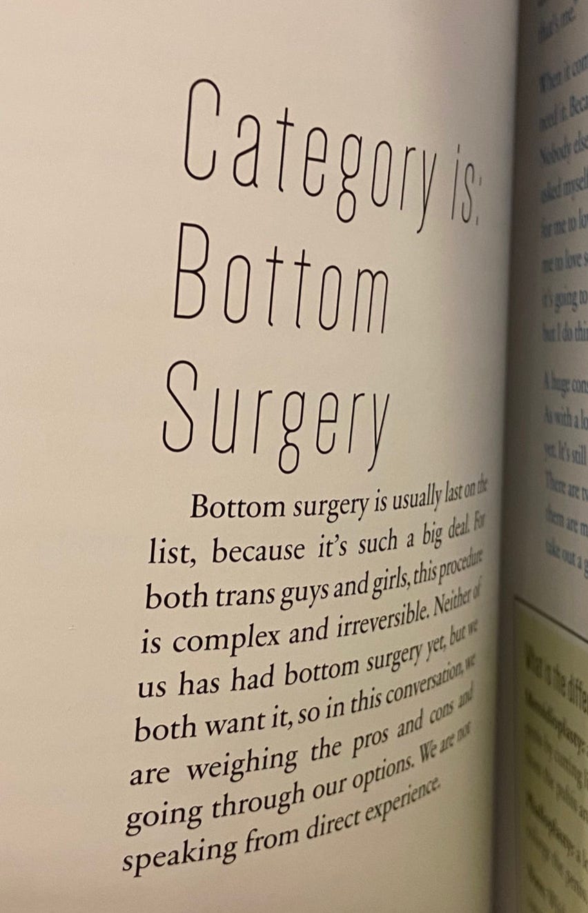 In all honesty, I was just glad I hadn't walked into Waterstones that day with a child. It was my first thought as soon as I landed on the page about bottom surgery; I just had no idea that it would/ could get even worse!