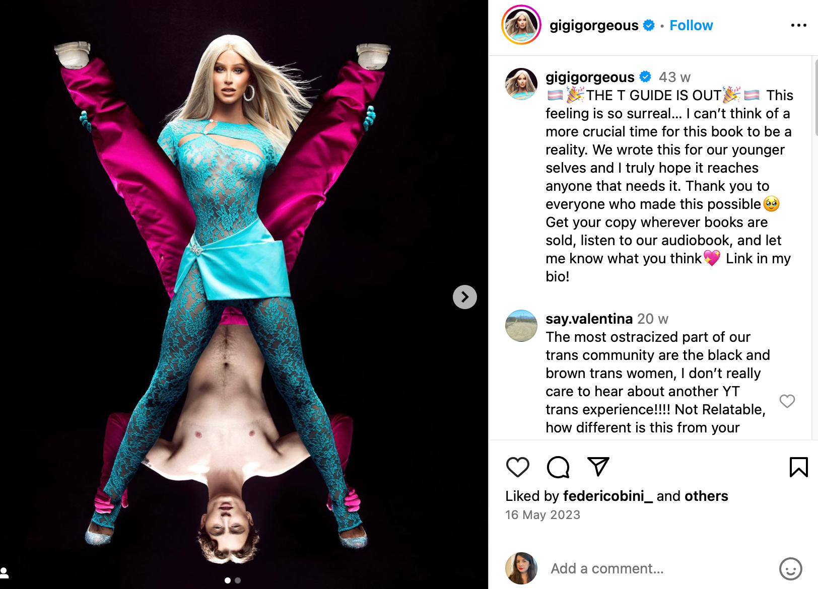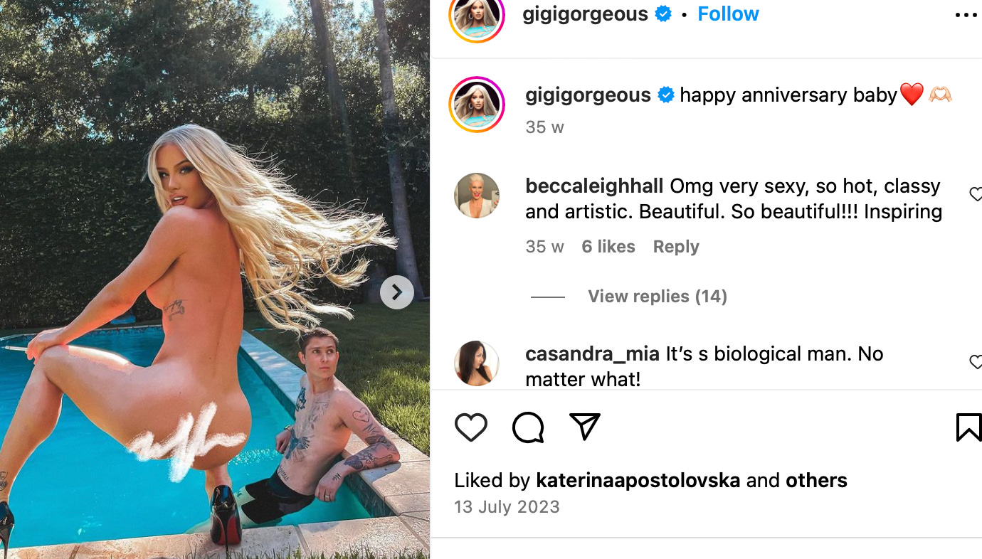 Then there’s Gigi Gorgeous who is obviously a woman because she has make-up and long hair. Quite TOWIE vibes (The Only Way is Essex) if you ask me: