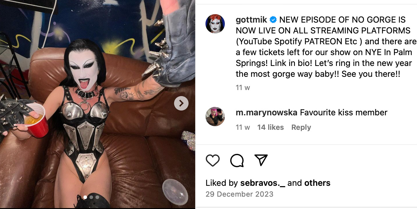 It’s quite difficult to work out what Gottmik’s biological sex is because he (Gigi Gorgeous refers to Gottmik using “he/him” pronouns) also sometimes dresses like S&M’s answer to Timothée Chalamet: