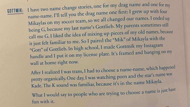 Furthermore, Gottmik explains his name in The T Guide. I was going to summarise it, but decided to copy and paste for reasons that will become apparent: