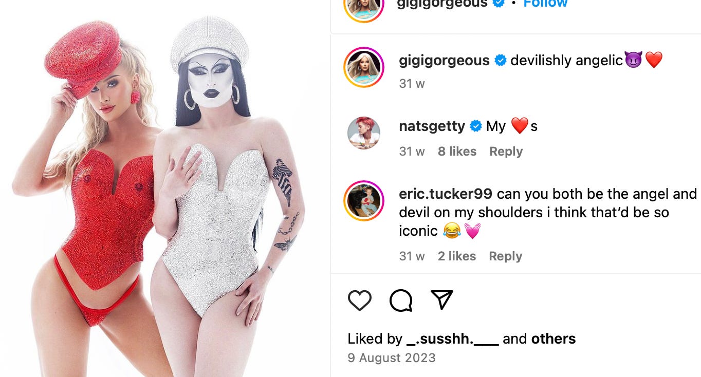 Another image from the book (below) posted by Gigi Gorgeous - who describes herself and Gottmik as “devilishly angelic”: