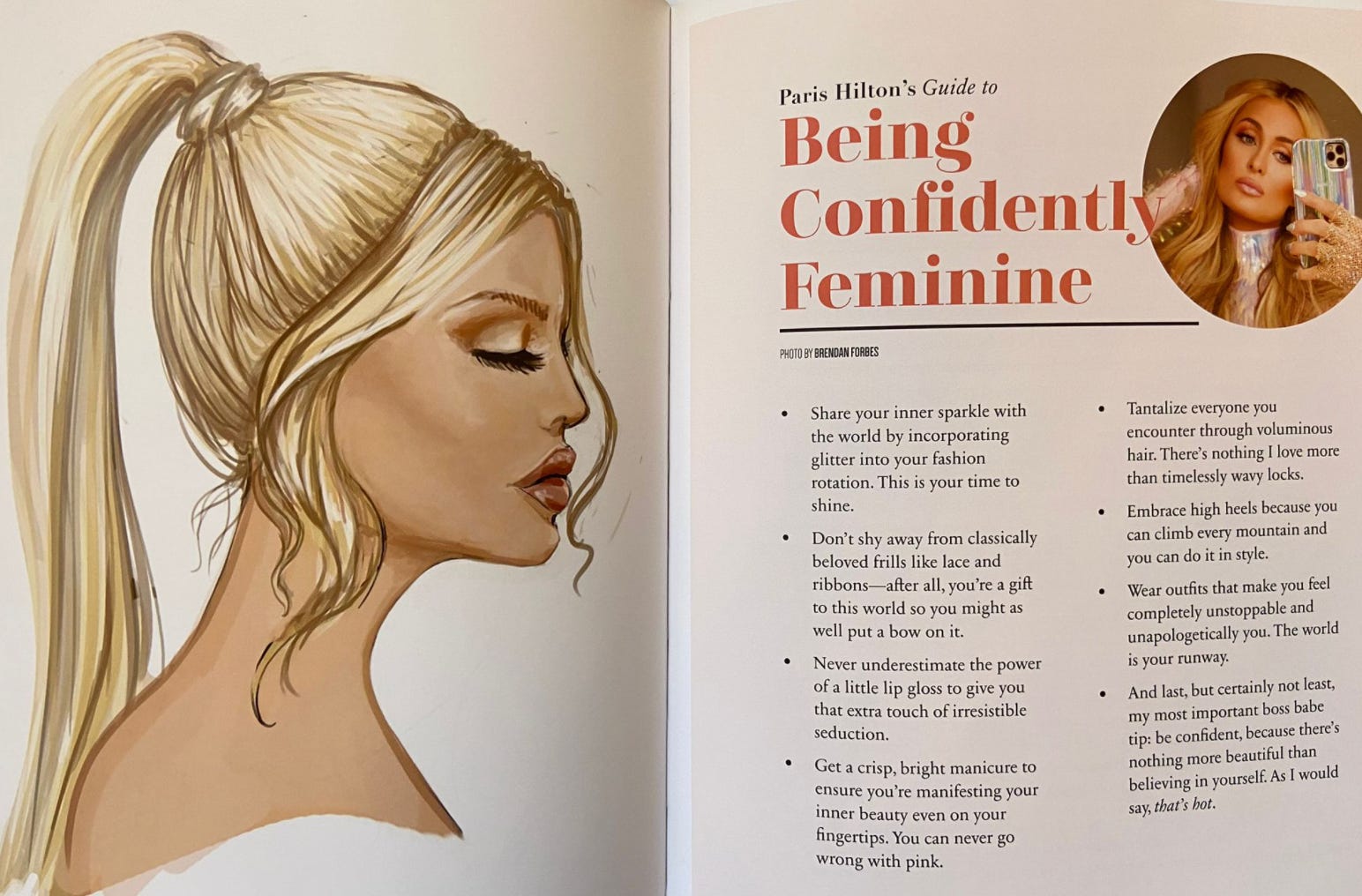 If you’re still not sure what’s “female” versus “male”, Paris Hilton has also contributed a guide to the book, titled “Being Confidently Feminine”, with pointers such as “Embrace high heels because you can climb every mountain”.