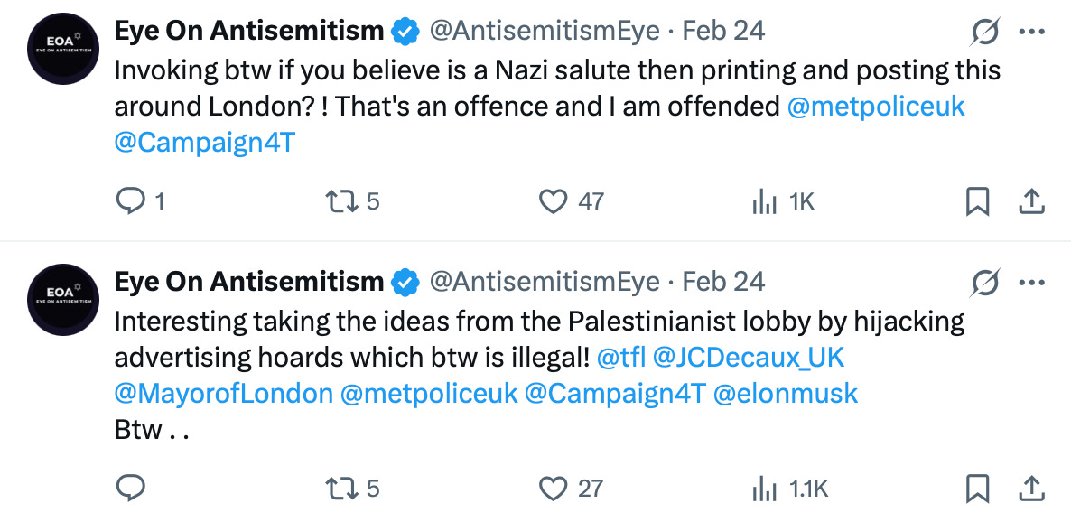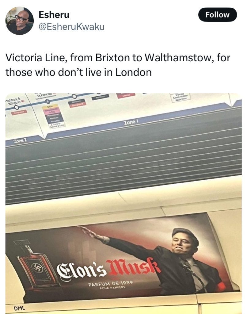 The CPB appears to be responsible for the anti-Musk poster in Tottenham (see below). Saying that, it may have British activists doing its work for it - especially as we know it already collaborates with Led by Donkeys, whose modus operandi is billboard/ large campaigns.