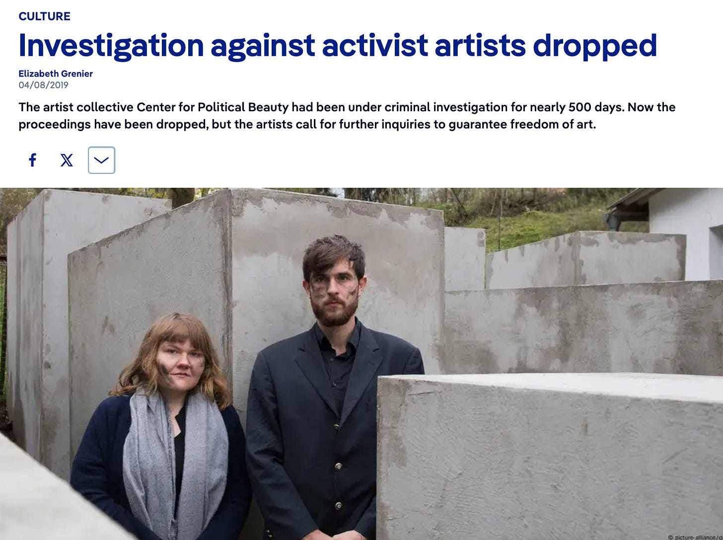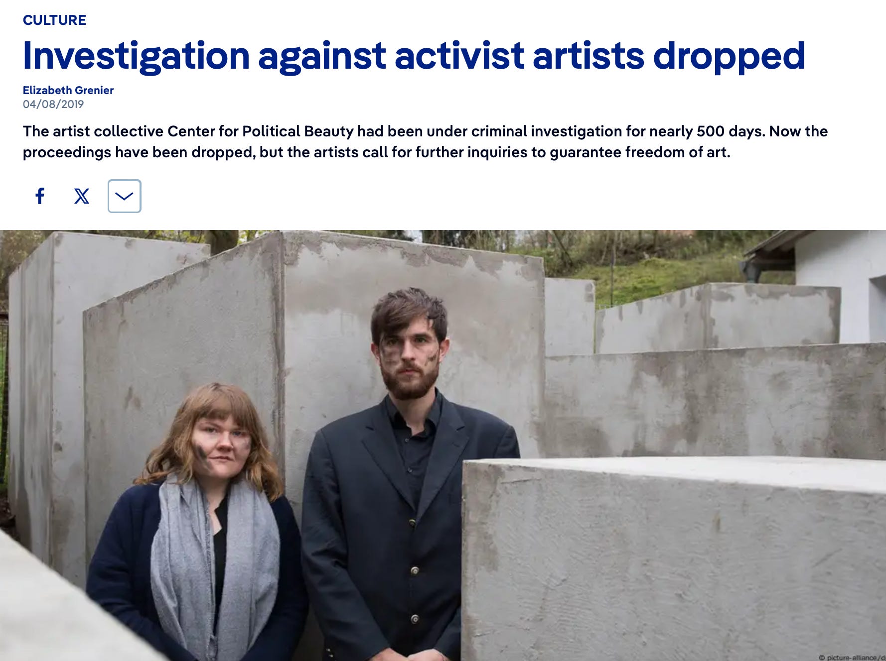 It was also under investigation for 16 months “after the guerrilla artists had set up a replica of Germany's national Holocaust memorial outside of the home of Björn Höcke, Thuringia's leader of the far-right Alternative for Germany party (AfD).”
