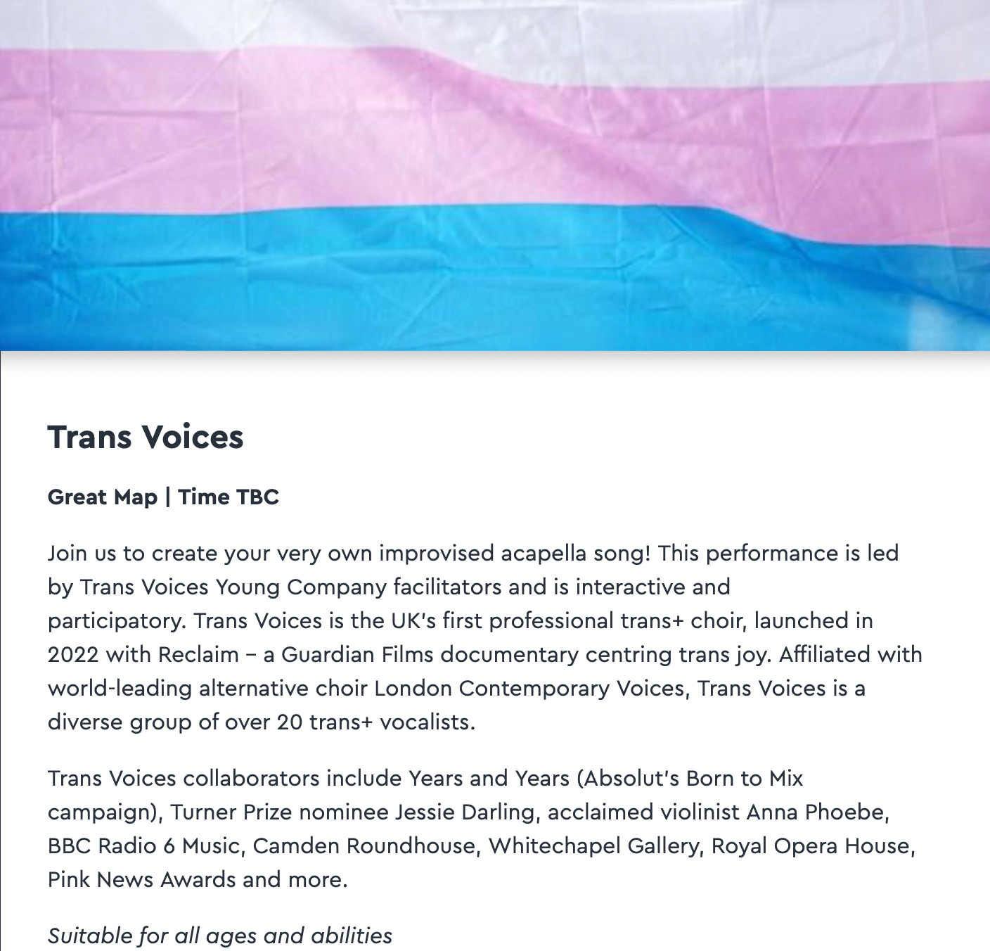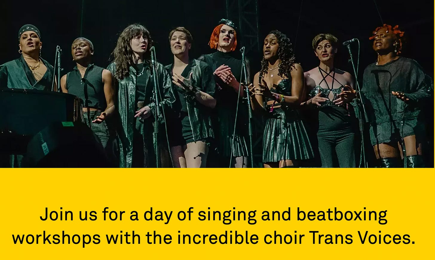 A performance by the choir Trans Voices (see also, The Southbank Centre)