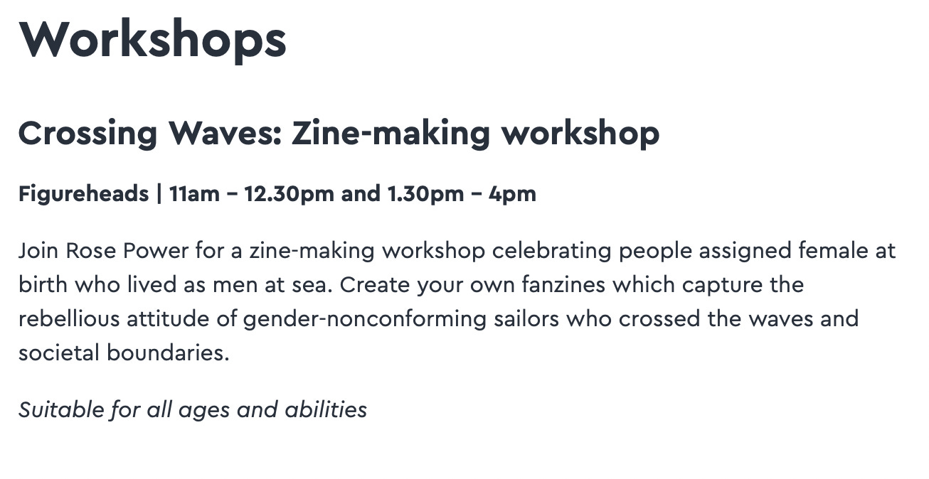 A workshop to celebrate “people assigned female at birth who lived as men at sea” and “gender-nonconforming sailors”.