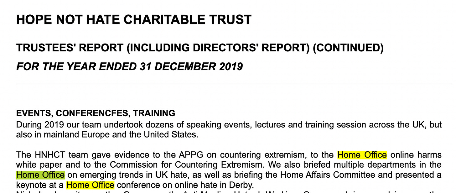 Clearly the Home Office leaned heavily on HNH - which “briefed multiple departments… on emerging trends in UK hate” and “presented a keynote at a Home Office conference on online hate in Derby.”