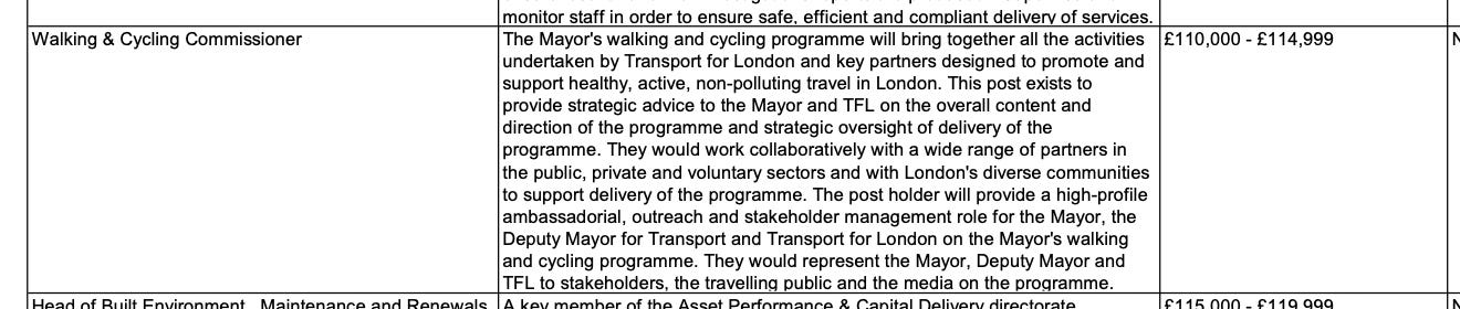 Meet London's Walking and Cycling Commissioner paid £110,000-£114,999 per year