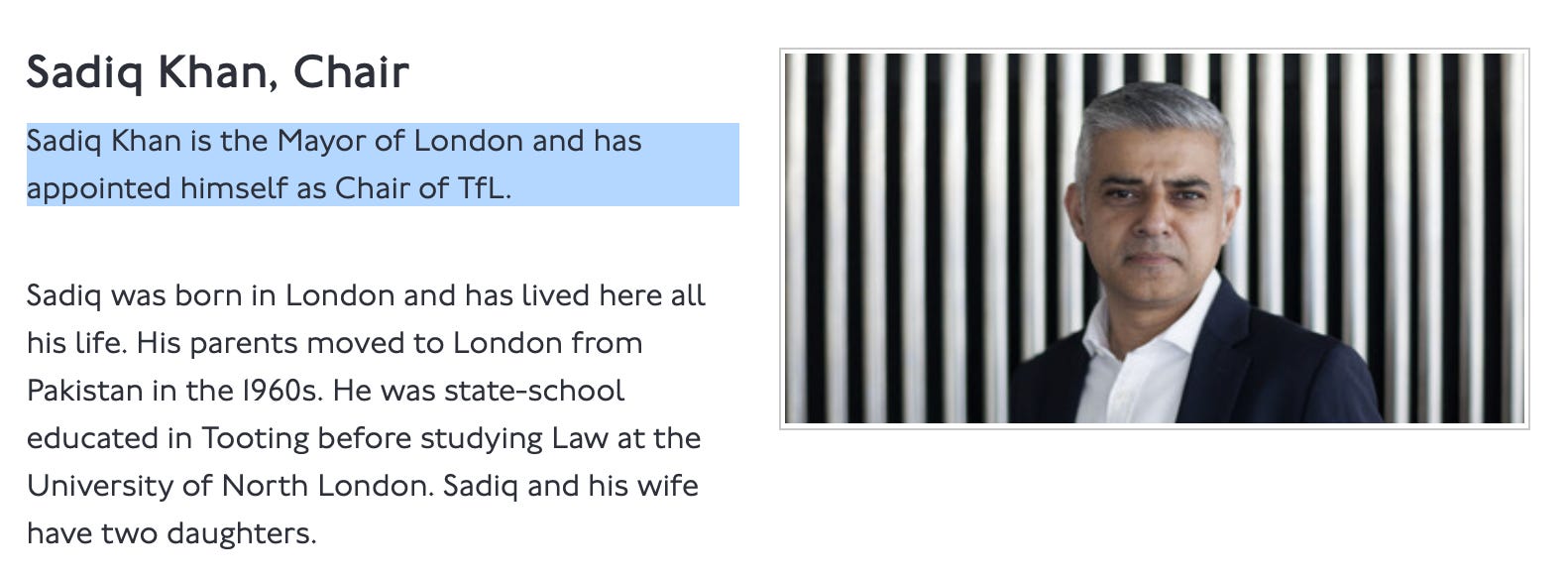 And TfLâs (self-appointed) Chair is Sadiq Khan: