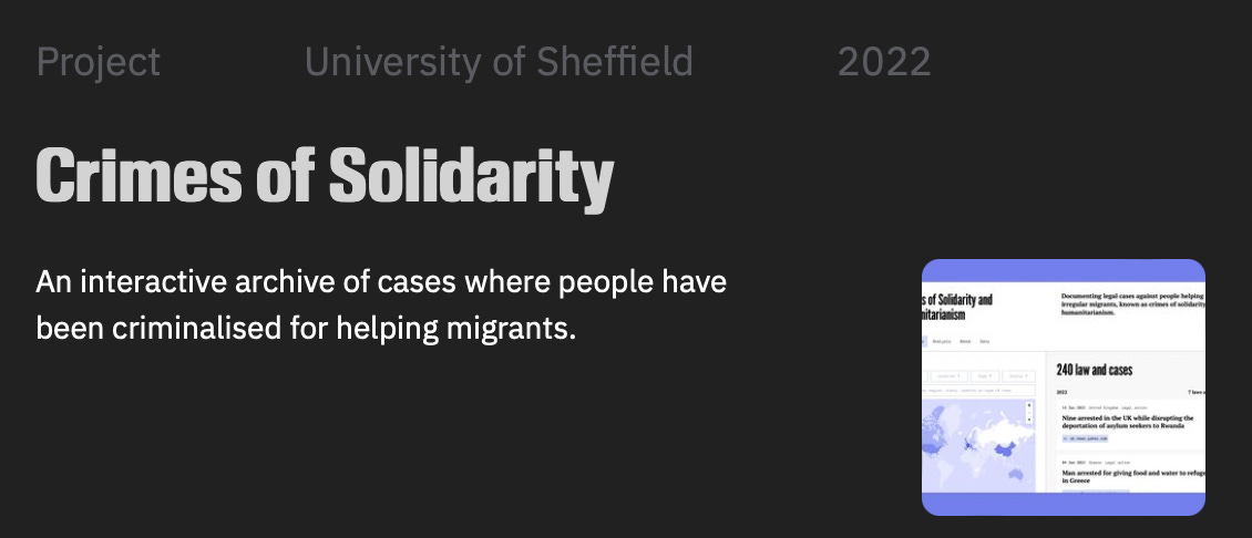 Other achievements include supporting the “Crimes of Solidarity” and “Border Forensics” campaigns: