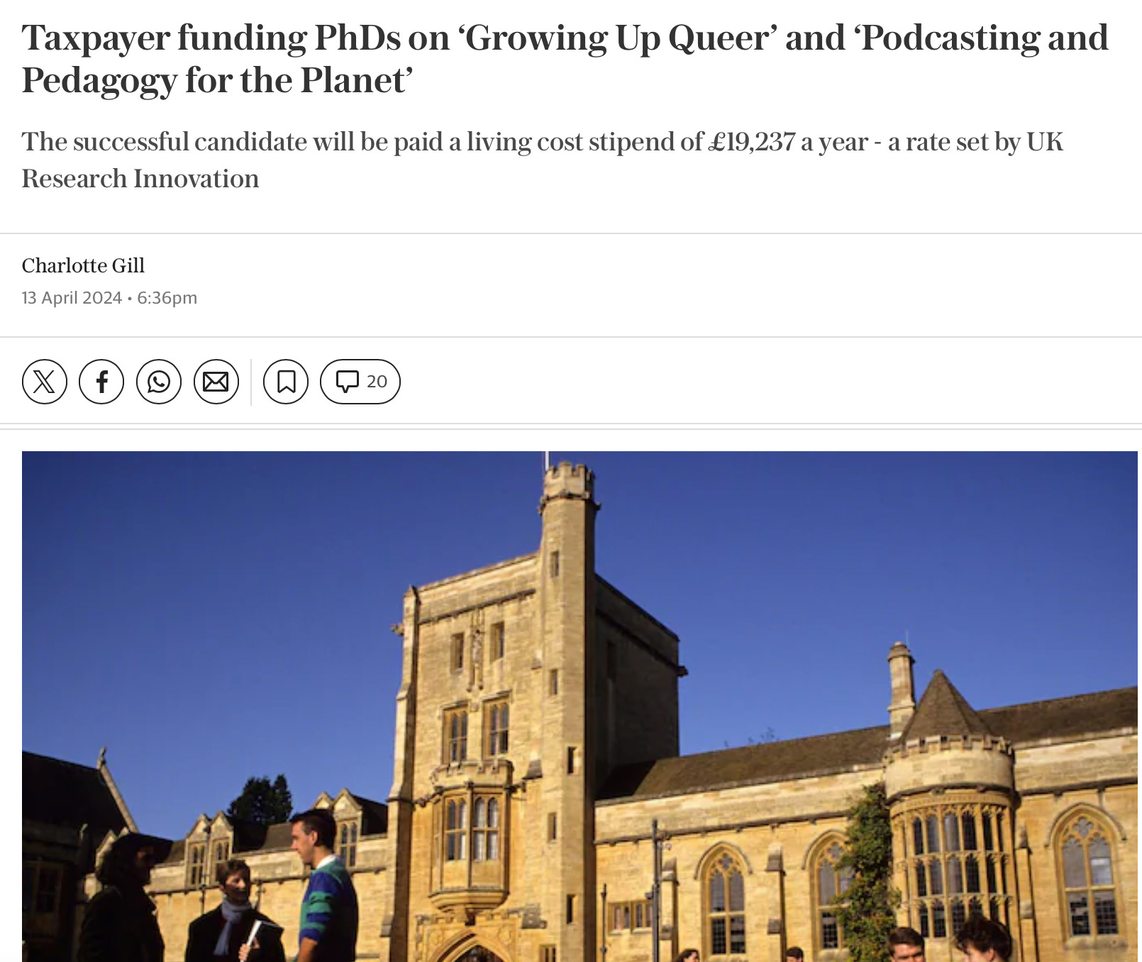 Woke Waste: A student is being paid a stipend by by AHRC of approximately ÂŁ18,622 a year to research trans archaeology. The student gave a lecture titled Bones Donât Care About Your Feelings: Challenging Transphobic Invocations of Archaeology in (Social) Media. A slide from the presentation asks: âWhat if I told you that when an archaeologist finds human remains, it is a fact that there [sic] only two choices for gender identification.â More here.