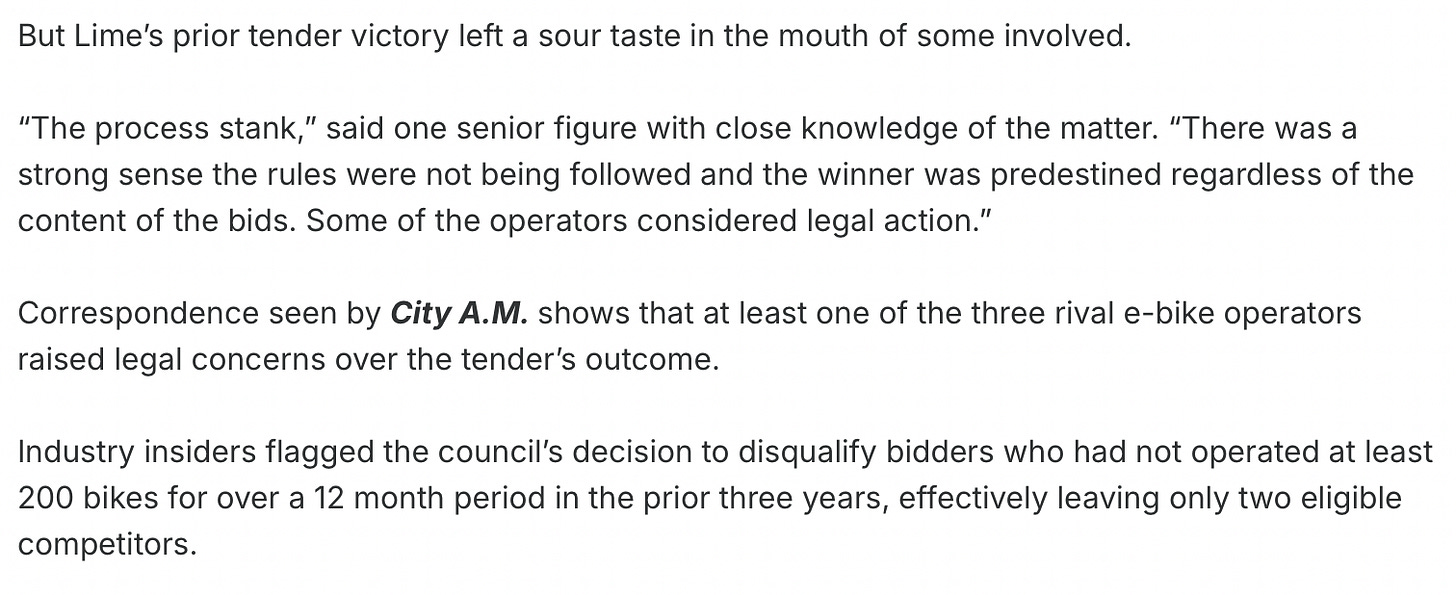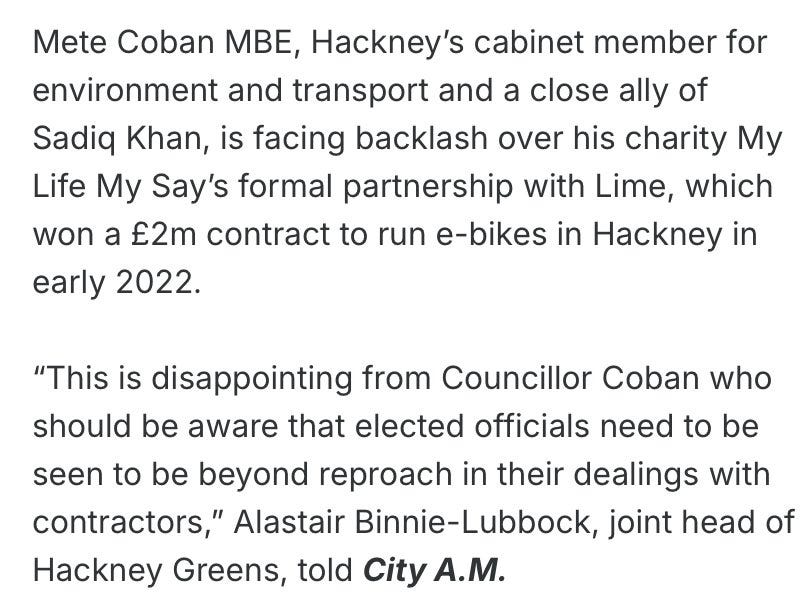 Interestingly, Coban was previously criticised for awarding a £2 million contract to Lime, which ran e-bikes in Hackney in early 2022 (more here):