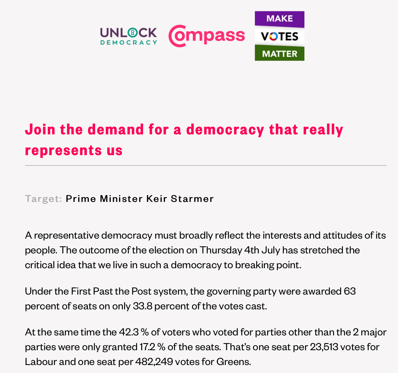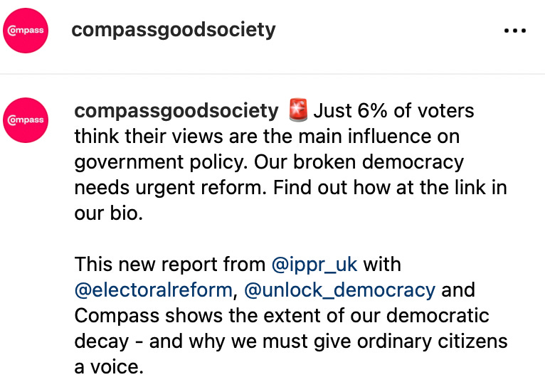 Compass has previously worked with Unlock Democracy…