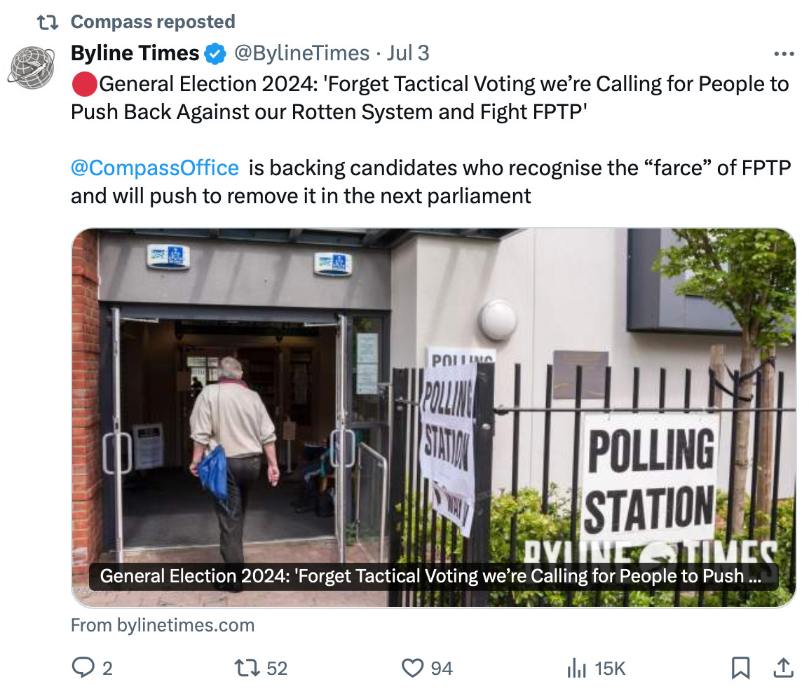 Compass has also previously endorsed tactical voting, as this article by The Byline Times shows: