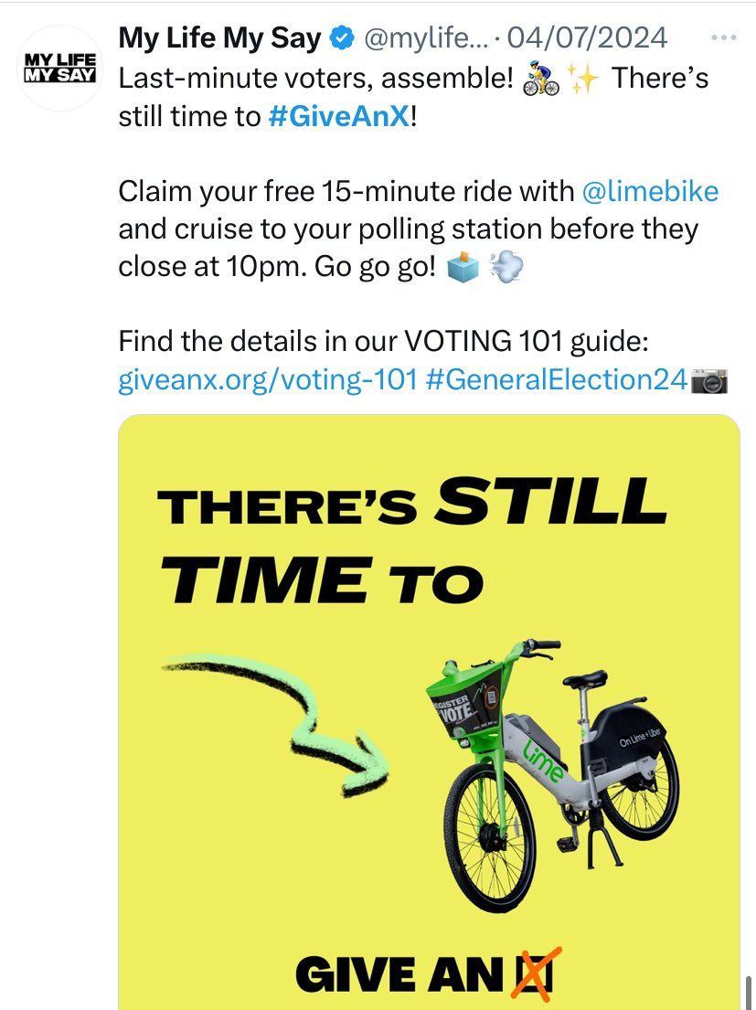 … and ran a ‘GiveAnX’ campaign earlier this year to encourage people to vote in the General Election - spurred on by Lime Bike: