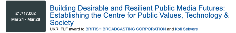 Playback speed×Share postShare post at current timeShare from 0:000:00/0:003314You can’t escape from funding the BBCAn introduction to the "Responsible Innovation Centre for Public Media Futures"Charlotte GillNov 06, 20253314ShareHere’s a link to this ghastly service.And it’s UKRI profile:More:BBC Media Action. Why are taxpayers being charged £57 MILLION for the BBC’s global charity?Charlotte Gill·Feb 4Read full storyWhy is the BBC spending £80 million per year on diversity?Charlotte Gill·Jul 9Read full storyBBC Talent: Meet the writers who tackle "Queerness", "intergenerational trauma" and "post-Brexit radicalisation"Charlotte Gill·Jul 7Read full storyDiscussion about this videoCommentsRestacksDOGE UK🇬🇧🐶A series on how the taxpayer is funding their own demiseA series on how the taxpayer is funding their own demiseSubscribeAuthorsCharlotte GillRecent PostsDOGE website gets a rebrand!Oct 14 • Charlotte GillTaxpayer funding for "Boroughs of Sanctuary"Aug 20 • Charlotte GillMeet Sadiq Khan’s top team - costing the taxpayer £2.7 MILLION a yearJun 27 • Charlotte GillIslington Council blocked me for highlighting its schemes for asylum seekersJun 23 • Charlotte GillThe first official DOGE report - into Kent County CouncilJun 13 • Charlotte GillDOGE UK launches!Apr 21 • Charlotte GillCatch me on GB News yesterdayFeb 12 • Charlotte Gill
